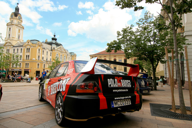 Mecsek Rally a inceput cu prezentarea festiva a echipajelor in centrul istoric al orasului si a continuat cu prologul etapei, desfasurat in parcarea unui Mall. Aici am platit un bilet in valoare de aproximativ 40 de lei pentru a putea avea acces in zona unde evoluau masinile. Biletul era valabil doar pentru barbati, femeile avand intrarea libera 🙂 Seara, incepand cu ora 22:00 echipajele au avut de parcurs doua probe speciale pe noapte si la finalul primei zile Claudiu si Mihaela se clasau pe locul al zecelea in clasamentul general. Dupa o scurta vizita la miez de noapte in parcul de service din Pecs, ajungeam in camera pe la ora 2.