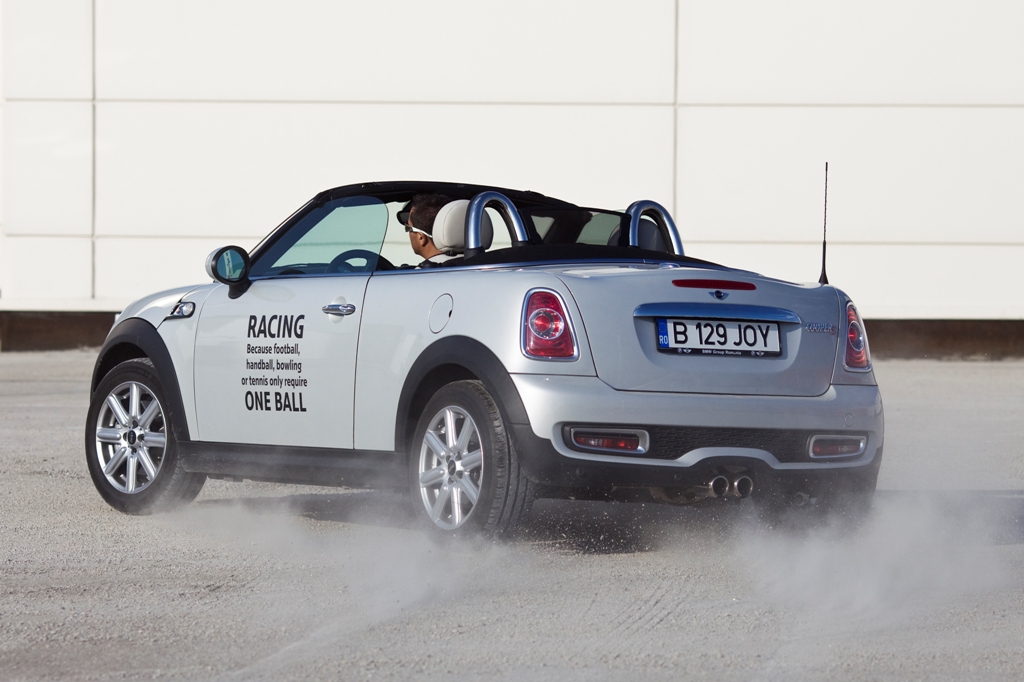 MINI Roadster s-a prezentat presei din Romania intr-o competitie speciala organizata la AFI Palace Cotroceni in perioada 11-12 aprilie. In doua probe speciale, participantii au putut sa testeze agilitatea si manevrabilitatea unica MINI, dar si spatiul remarcabil pe care acest model deosebit de compact il ofera. O data cu debutul noului MINI Roadster au fost prezentate in premiera si doua noi modele speciale, in editie limitata: MINI Countryman Dark Edition si MINI Rauno Aaltonen Edition.