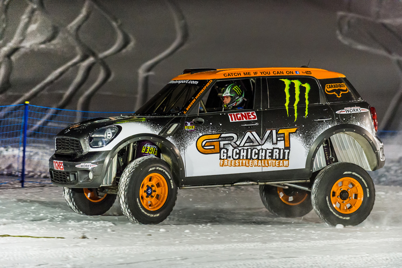 Săritura încununată de succes reprezintă un nou moment de referinţă în cariera lui Chicherit, una extraordinară în sporturi extreme. La 34 de ani, el se află în elementul său atât pe zăpadă, cât şi la volanul unei maşini de raliuri. De patru ori campion mondial la schi freestyle, el a cucerit în două rânduri şi titlul de campion al Franţei la raliuri. Francezul este şi un veteran al echipei X-raid (cea care în ianuarie 2013 a triumfat pentru al doilea an la rând în Raliul Dakar cu MINI ALL4 Racing), făcându-şi debutul pentru gruparea germană în 2006. În 2011, Chicherit s-a aflat în scaunul pilotului atunci când MINI ALL4 Racing a avut prima sa apariţie în America de Sud pentru cel mai dur raliu din lume.