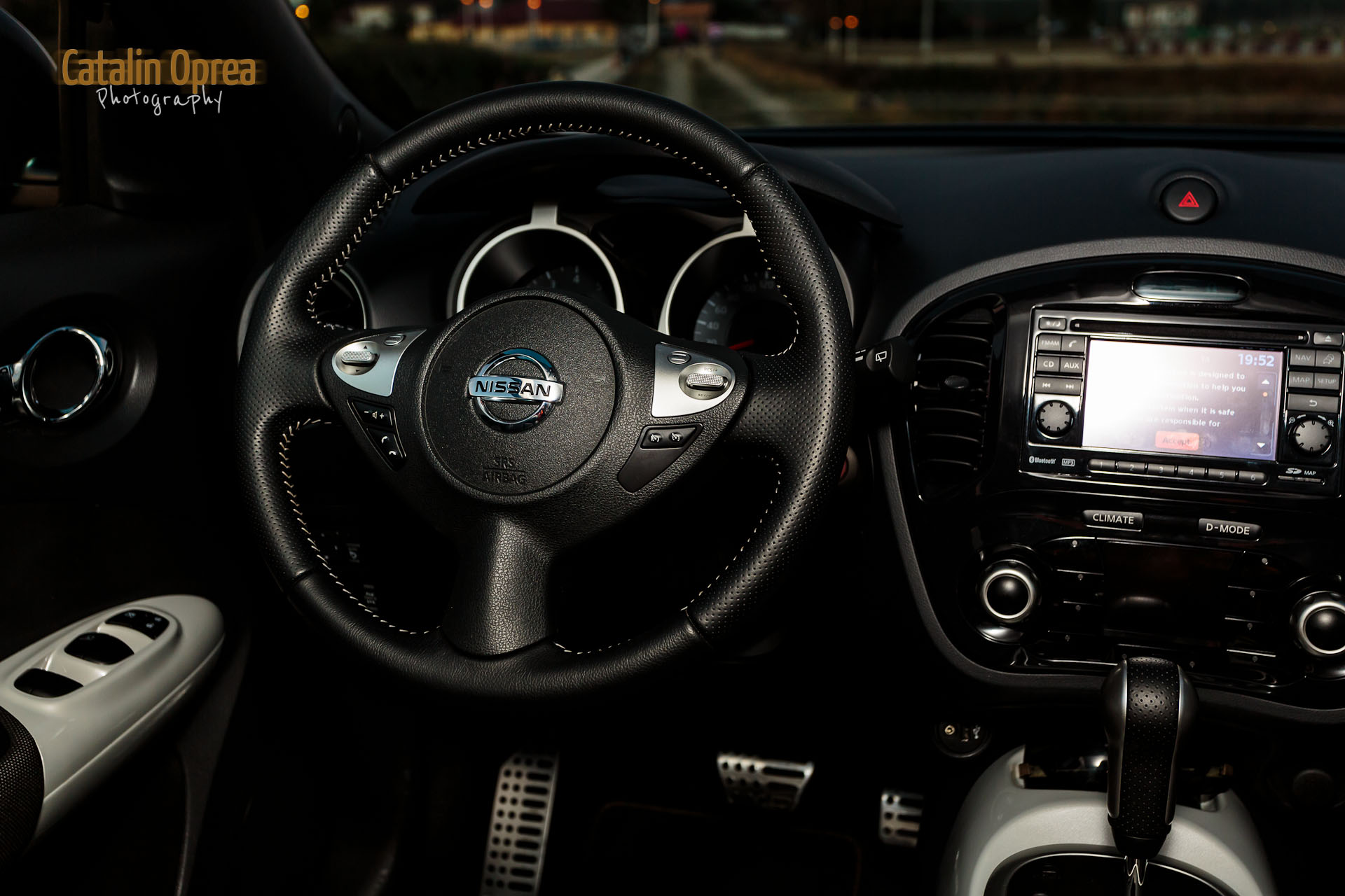 Dupa prima intalnire fata in fata am inceput sa o consider cool. Cred ca asta e cel mai potrivit cuvant. Nu stiu cum sa explic, te acapareaza fara sa-ti dai seama. La exterior, editia speciala Shiro are cateva caracteristici care au menirea sa o deosebeasca fata de un Juke normal. Oglinzile exterioare au fost vopsite intr-un argintiu satinat la fel ca manerele portierelor. Shiro vine cu jante de aliaj pe17 inch, colorate intr-un gri inchis, care se asorteaza foarte bine cu celelalte tuse de argintiu de la exterior. Cel mai important lucru care-l deosebeste de restul gamei este vopseaua in sine, denumita Violet Nightshade. Bineinteles, Shiro poate fi comandat si in celelalte culori disponibile.