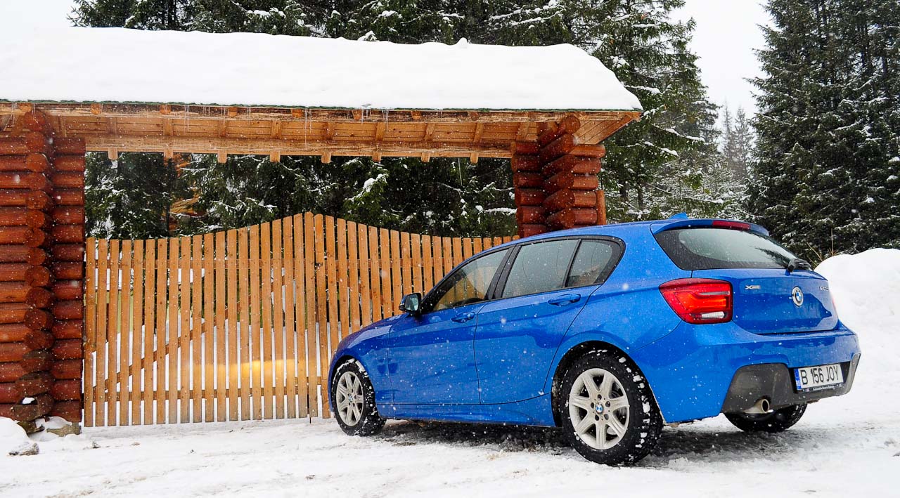 Lansarea neconventionala pentru piata din Romania a fost facuta la Predeal, pilotul Claudiu David urcand si coborand de mai multe ori partia Cocosul cu aceiasi masina ca cea din testul nostru de astazi. Ce-i drept, a beneficiat de aportul unor pneuri cu tinte, dar la cat de mare era zapada, sa stiti ca acestea nu fac minuni. Am decis astfel sa plecam in cautarea zapezii, pentru a ne convinge pe propria piele de eficienta sistemului xDrive de pe Seria 1 si ne-am trezit rapid, cu doua snowboard-ere strecurate in portbagaj pe drumul catre Transalpina Ski Resort, unde in apropierea lacului Vidra a fost inaugurata anul trecut o noua partie.