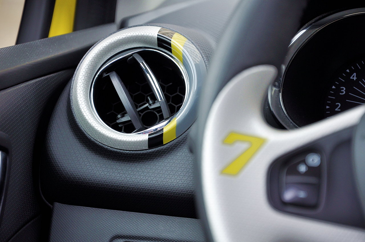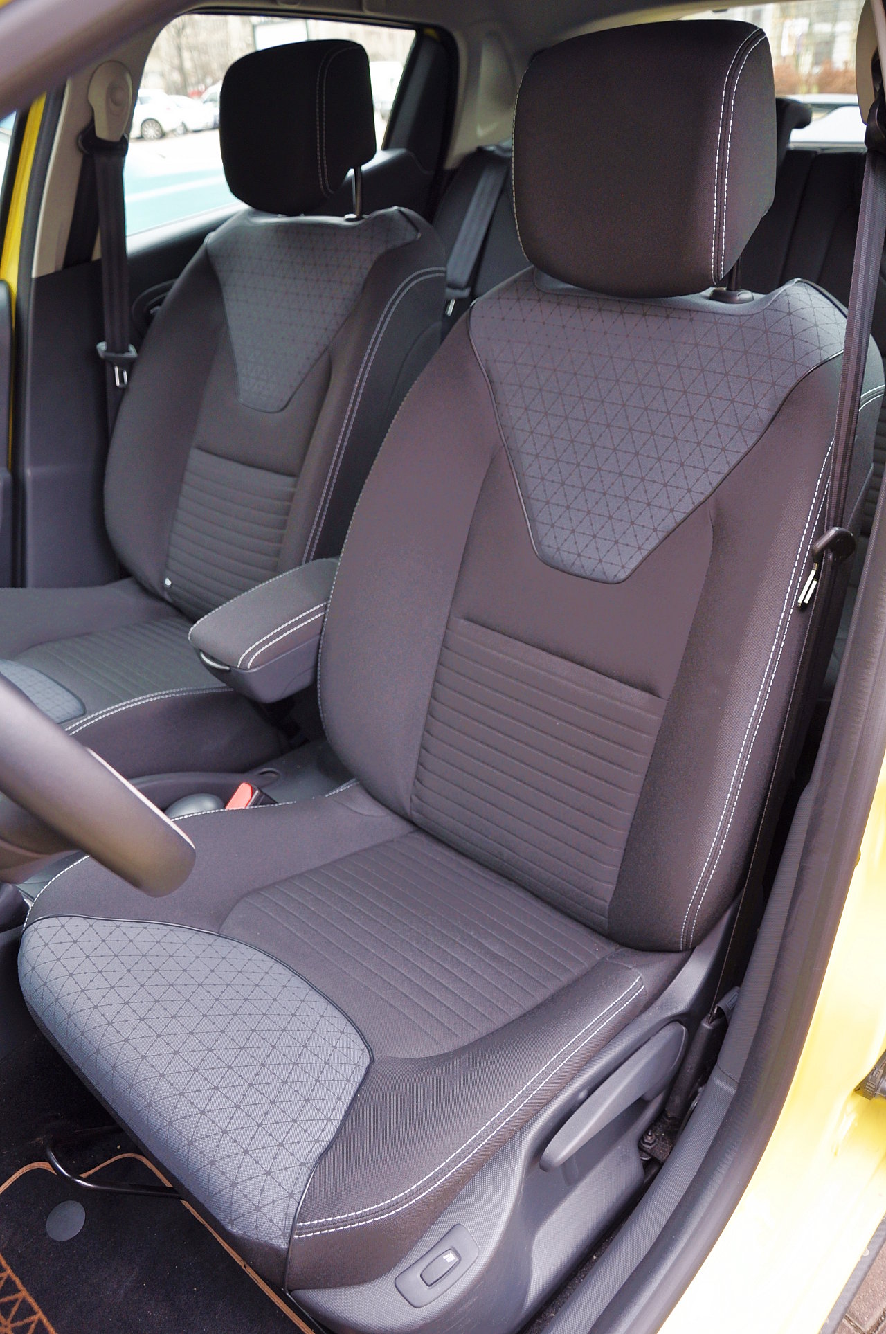 Interiorul nu se lasa mai prejos, si avand in vedere ca nu vorbim de o masina premium, a fost totusi tratat cu mult mai multa seriozitate comparat cu versiunile anterioare. Plansa de bord este placuta la atingere, fiind folosite materiale moi, care de obicei se regasesc in segmentul superior. Versiunile de echipare superioare ofera diferite scheme de culori la interior, pentru modelul testat de noi am regasit culoarea galben, care suprima o posibila senzatie de monotonie.  Consola centrala este complet redesenata, iar negrul lucios este omniprezent. Vitezometrul digital, este pozitionat central si foarte usor lizibil, indiferent de lumina exterioara. Spatiul interior a crescut , si cel putin pentru locurile din fata se observa cat de bine au fost utilizati centimetri in plus adaugati caroseriei.  Portbagajul este in limitele clasei, cu un volum de 300 de litri acceptabil pentru o tura de cumparaturi la hypermarket si geanta bebelusului. Scaunele nu sunt cele mai confortabile, insa pentru drumuri relativ scurte, 2-300km, nu sunt deranjante.