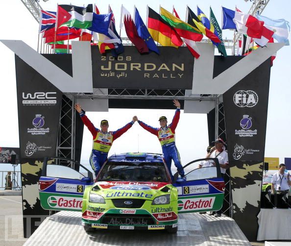 Mikko Hirvonen s-a impus in 2008 la debutul in WRC al Raliului Iordaniei . Sebastien Loeb se afla pe locul 1 in 2008 cand s-a tamponat cu Conrad Rautenbach pe un drum de legatura si a fost nevoit sa abandoneze, asftel incat finlandezul a castigat primul sau raliu din acel an.